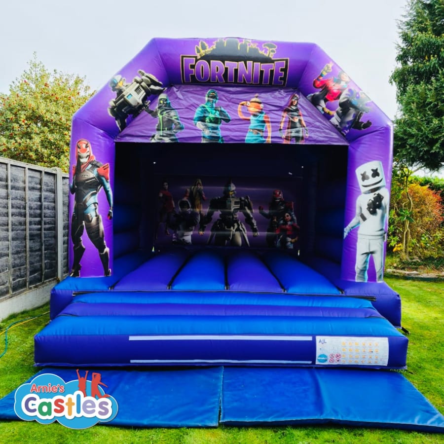 Arnie's Castles delivers this Fortnite bouncy castle across Crewe, Nantwich, Sandbach, Congleton, Northwich, Knutsford, Madeley, Alsager, Biddulph, Stoke-on-Trent, Leek, Cheadle, Uttoxeter, Newcastle-under-Lyme, Stone, Eccleshall, Stafford, Rugeley, Cannock, Penkridge, Newport, Market Drayton & surrounding areas.