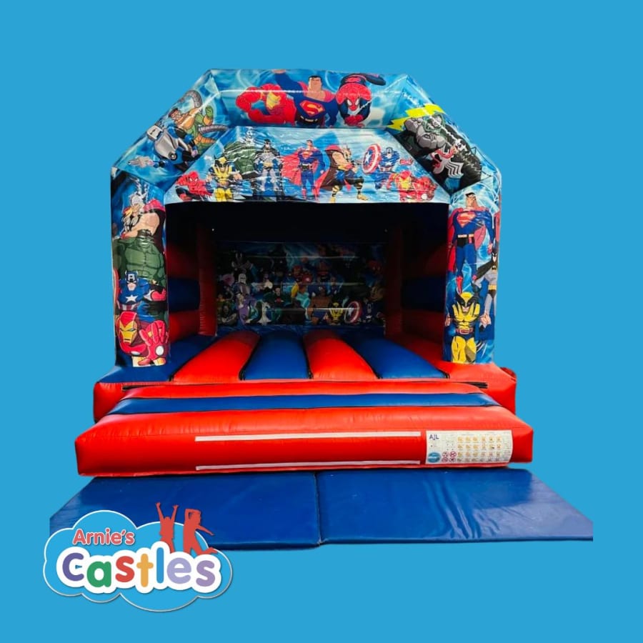 Arnie's Castles deliver this Super Heroes bouncy castle in Crewe, Nantwich, Sandbach, Congleton, Northwich, Knutsford, Madeley, Alsager, Biddulph, Stoke-on-Trent, Leek, Cheadle, Uttoxeter, Newcastle-under-Lyme, Stone, Eccleshall, Stafford, Rugeley, Cannock, Penkridge, Newport, Market Drayton & surrounding areas.