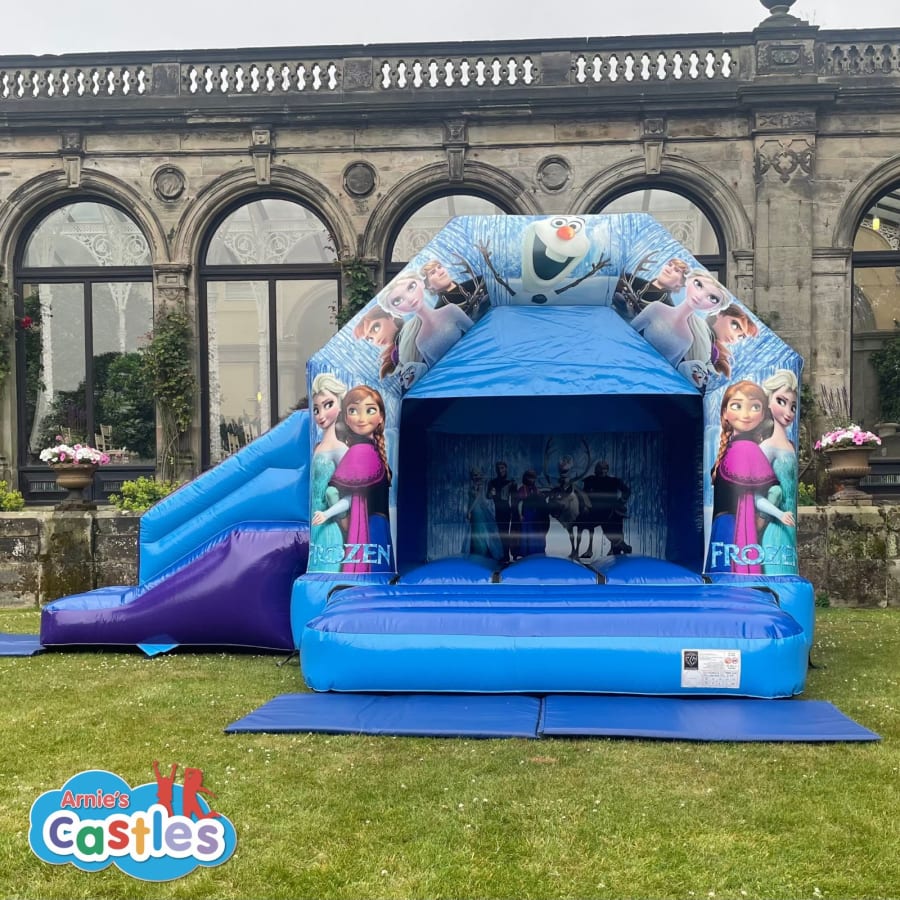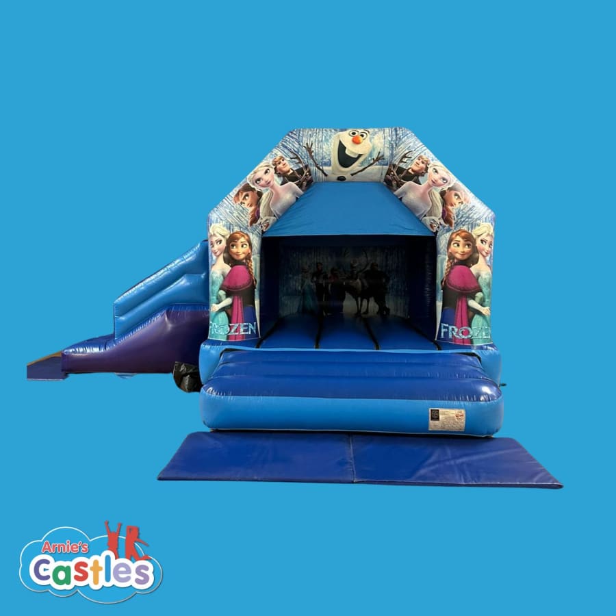 Arnie's Castles provide reliable delivery, setup & collection for this Frozen Bouncy Castle Slide Combo in Crewe, Nantwich, Sandbach, Congleton, Northwich, Knutsford, Madeley, Alsager, Biddulph, Stoke-on-Trent, Leek, Cheadle, Uttoxeter, Newcastle-under-Lyme, Stone, Eccleshall, Stafford, Rugeley, Cannock, Penkridge, Newport, Market Drayton & surrounding areas.