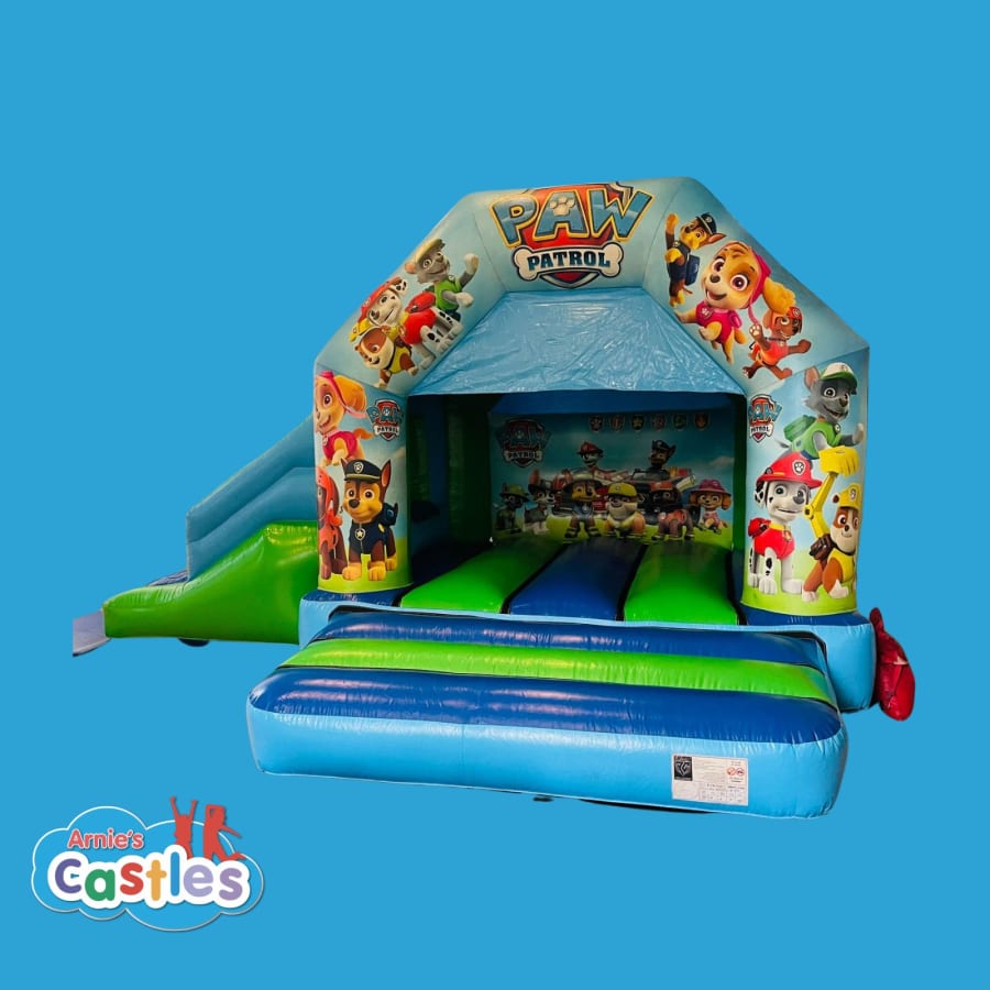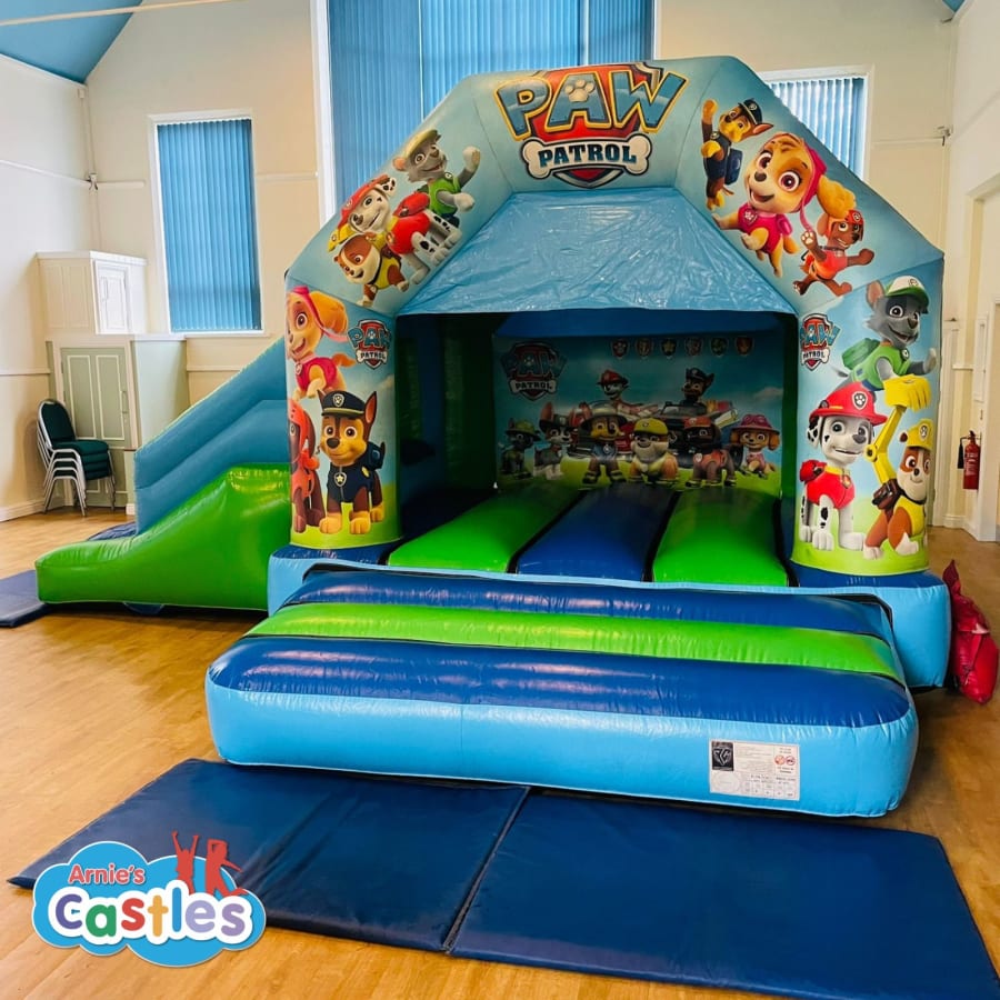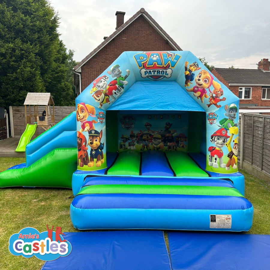 Arnie's Castles 17 x 15ft Paw Patrol bouncy castle slide combo is available in Crewe, Nantwich, Sandbach, Congleton, Northwich, Knutsford, Madeley, Alsager, Biddulph, Stoke-on-Trent, Leek, Cheadle, Uttoxeter, Newcastle-under-Lyme, Stone, Eccleshall, Stafford, Rugeley, Cannock, Penkridge, Newport, Market Drayton, & surrounding areas.